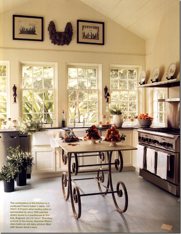 How crazy is it that the most expensive room in the house is so easy to date. I have done kitchens for clients on the cheap for $20,000 and high end kitchens for $300,000.00 and both can just as easily look completely dated in 10 years or less. I do love a white kitchen (Christopher Peacock and the movie “Something's Gotta Give” have totally changed what kitchens look like) and I must say my heart skips a beat for a custom mahogany kitchen with inset doors. A French range can stop me in my tracks and make me giddy with happiness. But these things are obscenely expensive. I’m also sick of all kitchens looking the same, I need to see some character in future kitchens. Below I have compiled a group of kitchen photos that are slightly different, it’s not that they don’t have any of the standard things mentioned above but they have a special feeling that makes them unique. Please note that I am in New England so most kitchens are traditional although I have done and truly LOVE contemporary Kitchens - these photos are not.